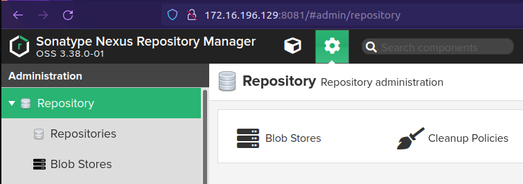 To login to Nexus type the address of the computer running the container with the port 8081. For example I am using: