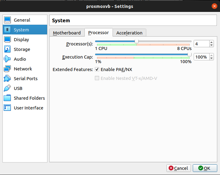 vboxmanage modifyvm proxmoxvb --nested-hw-virt on