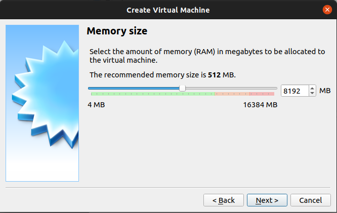 Next choose memory. Keep in mind that the VMs inside proxmoxvb will be sharing it and will benefit from more. I will be using 8GB.